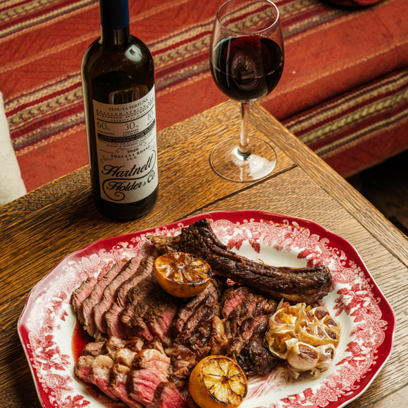 Our beef comes directly from Hannan Meats in Ireland, dry-aged to perfection in Himalayan Salt Chambers for 28–45 days. This process intensifies the natural flavours, locks in the juices, and purifies the air, resulting in rich, sweet, and award-winning beef. We then chargrill each cut over wood on our open grill, right in the heart of the restaurant.